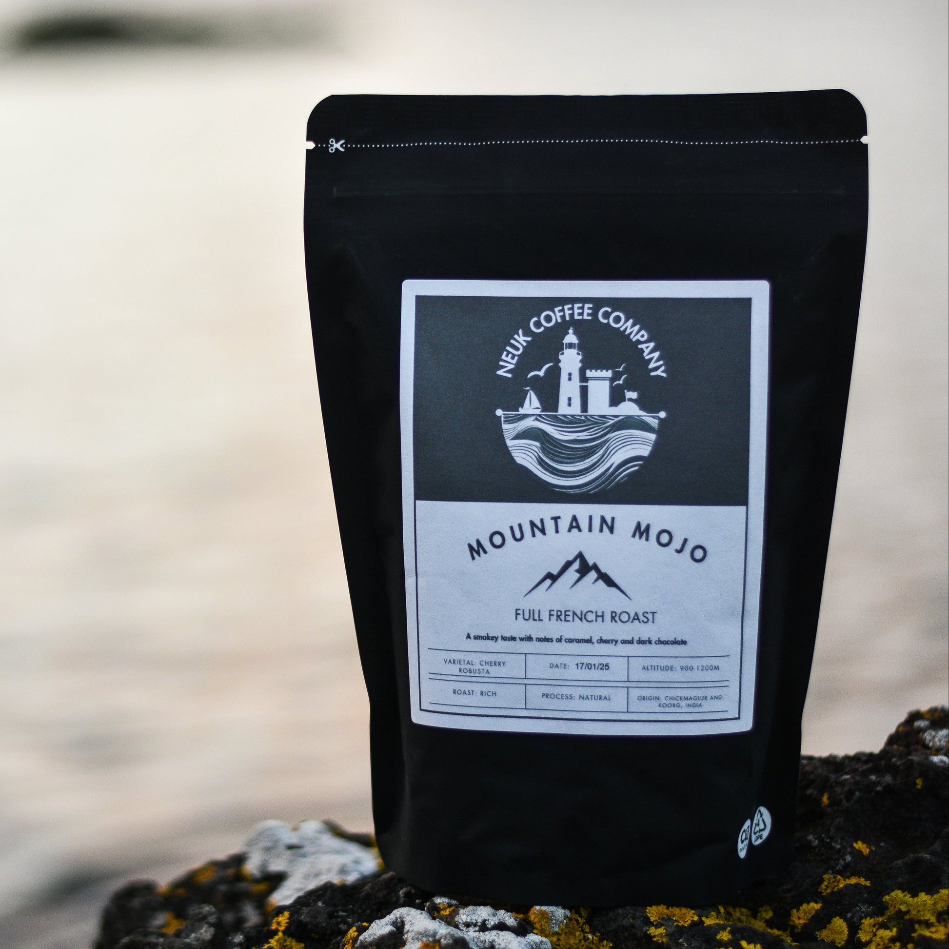 Roasted using Indian cherry beans with double the levels of caffeine, this coffee is taken into the second crack, providing an intense, extra-dark, smokey taste with low acidity. This Full French roast will give you the caffeine kick you're looking for!